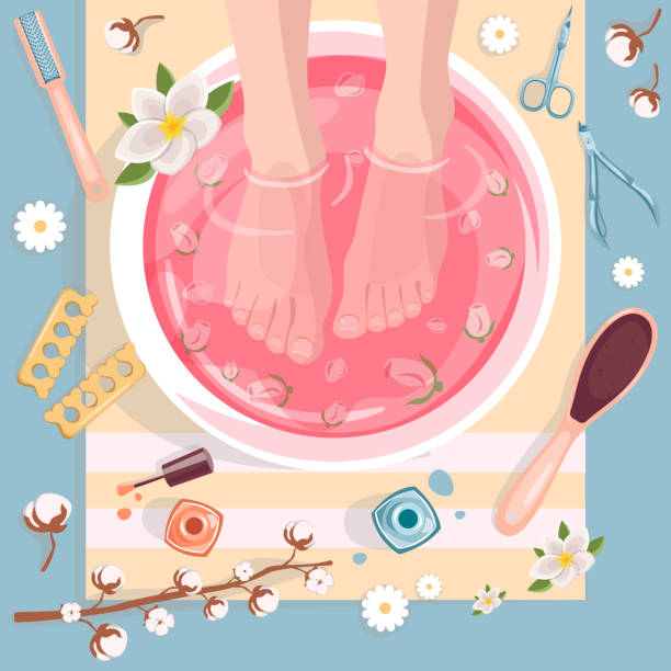 Pediluvio, levigatura del tallone, taglio e limatura delle unghie, perfezionamento zona cuticolare.